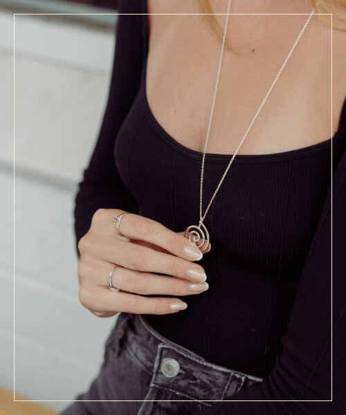 The Kirstie anxiety necklace features a distinctive spiral design with a moveable bead that can be traced along the structure in a calming circular motion, much like a maze. The idea behind this anxiety necklace is to provide you with those few extra seconds to process any situation and find your sense of calm. It’s a simple yet effective task that helps you relax and reset, restoring a feeling of peace and focus.